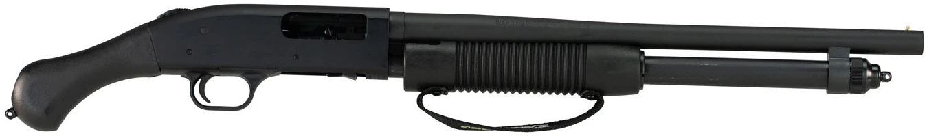 Mossberg 50639 590 Shockwave 12 Gauge 6+1 3" 18.50" Barrel, Blued Metal Finish, Drilled & Tapped Receiver, Dual Extractors, Corncob Forend w/Strap, Raptor Birdshead Grip Stock
