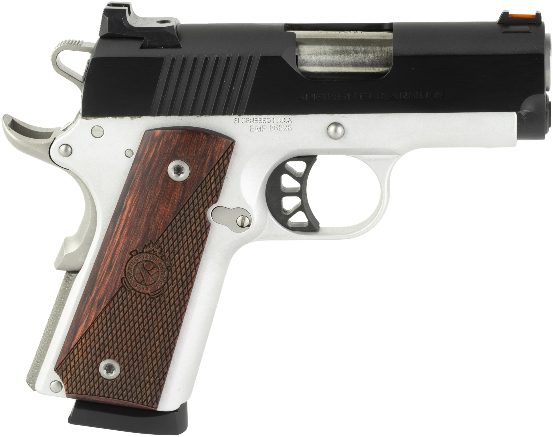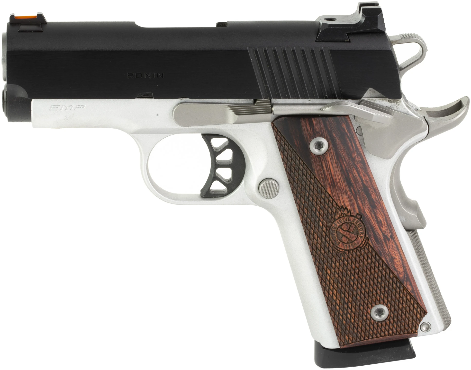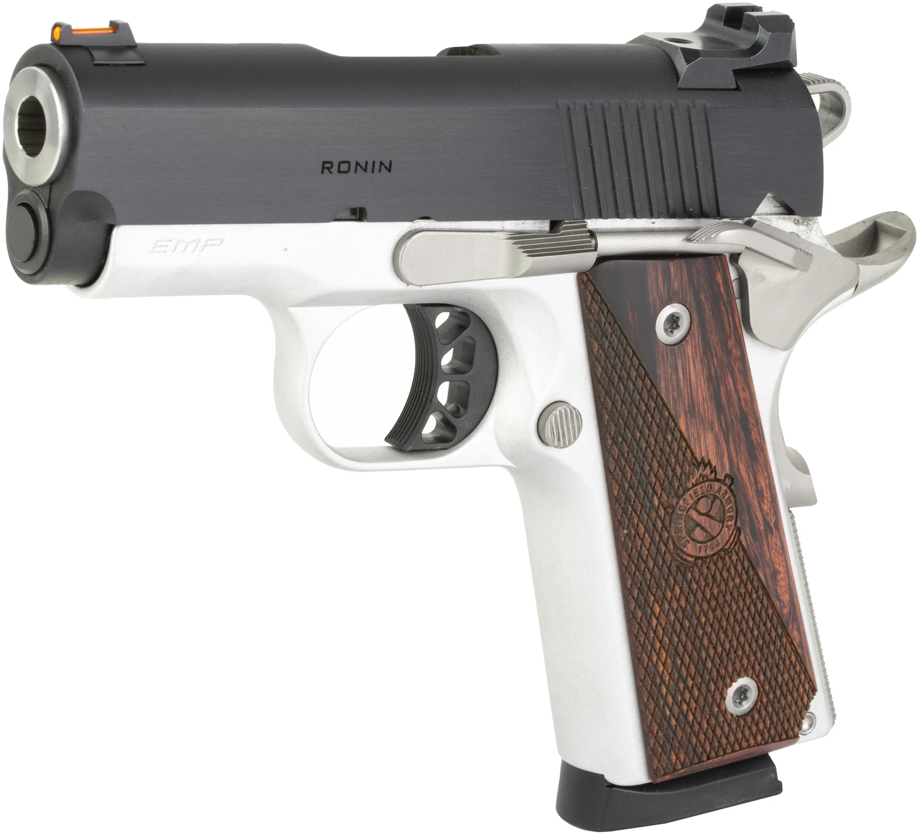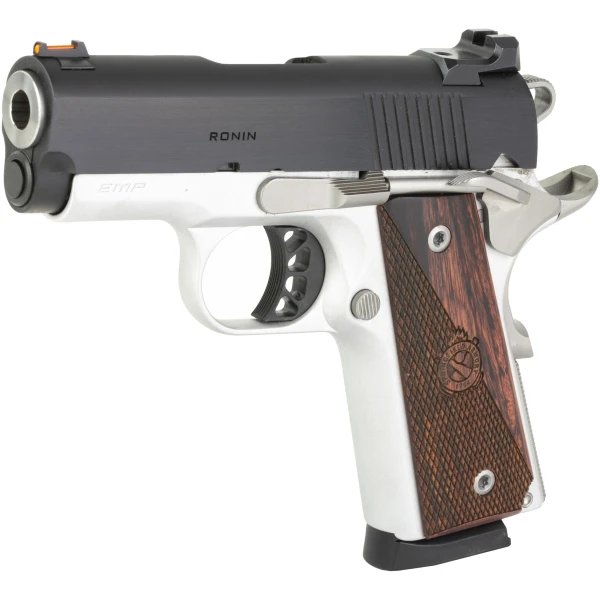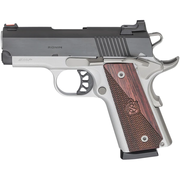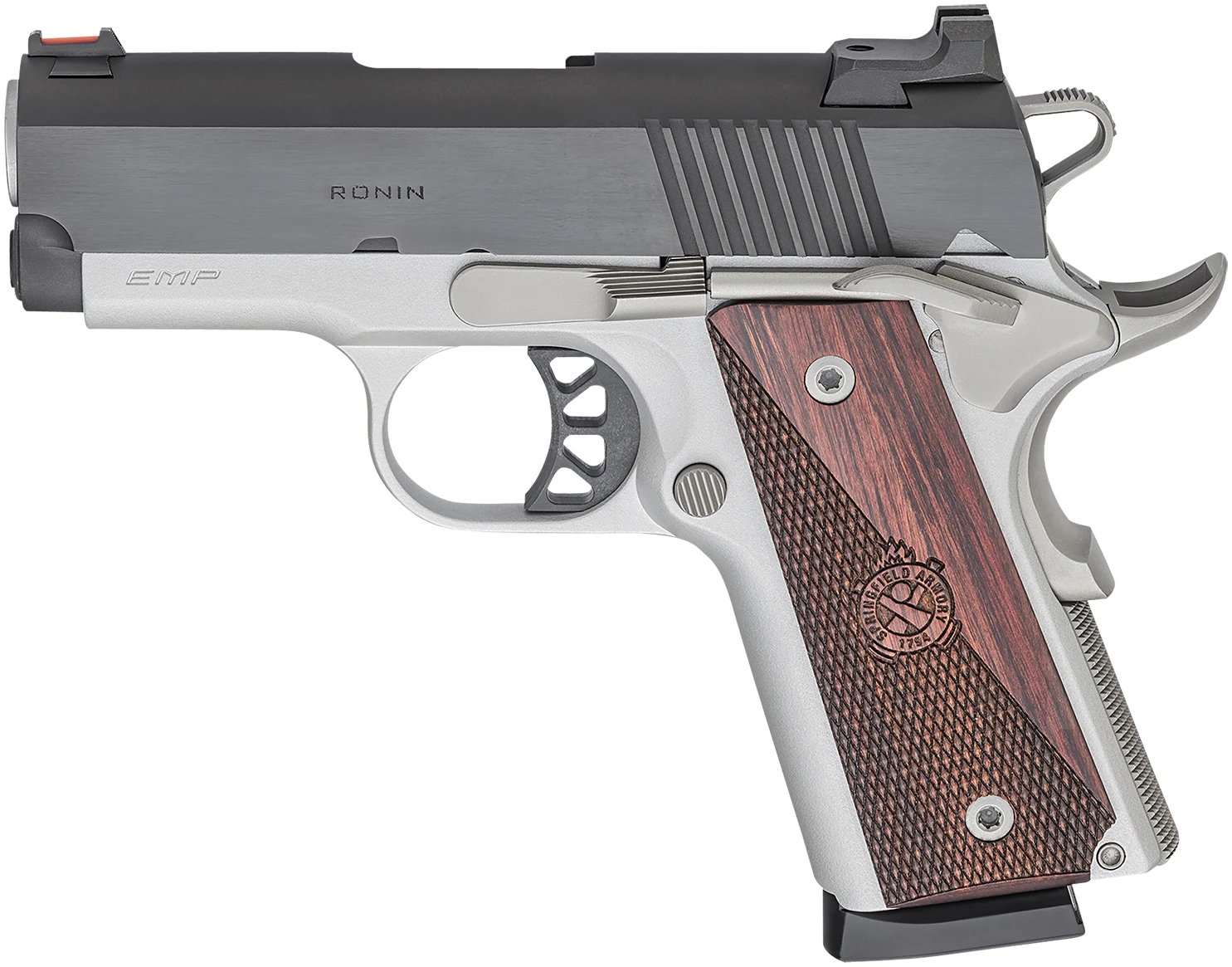 Springfield Armory PX9123L 1911 Ronin EMP 9mm Luger 3" Barrel 9+1, Satin Aluminum Cerakote Beavertail Frame, Serrated Blued Carbon Steel Slide, Textured Wood Grip