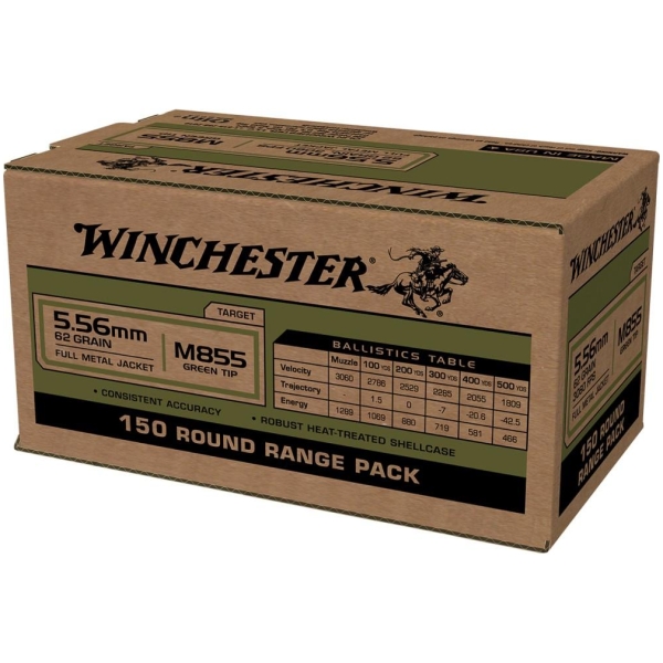 Winchester WM855150 USA M855 Green Tip 5.56x45mm 5.56 NATO 62 gr 150 Box
